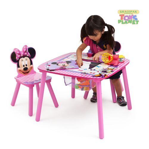 This Minnie Mouse Table and Chair Set with Storage was made for the Minnie-lover in your life. Featuring a spacious table top with colorful graphics and built-in storage in the center, plus two coordinating chairs, it's the perfect place to tackle homework, crafting or snack-time.Tons of Storage: A hidden storage basket holds art supplies and toys.Includes 2 Chairs: Two kid-sized chairs come with the table, making it the perfect place for homework, snack time or creative play.Beautifully Designed: A super sweet table paired with Minnie Mouse chairs looks great in any room of your home.Made to Last: Sturdy woods and scratch-resistant finishes are built to withstand years of use.Product Dimensions: 60.96 x 60.96 x 45 cmPackage Dimensions: 64.3 x 9 x 65 cmWeight: 9.9KG Recommended Age: Suitable for 3 years and above
