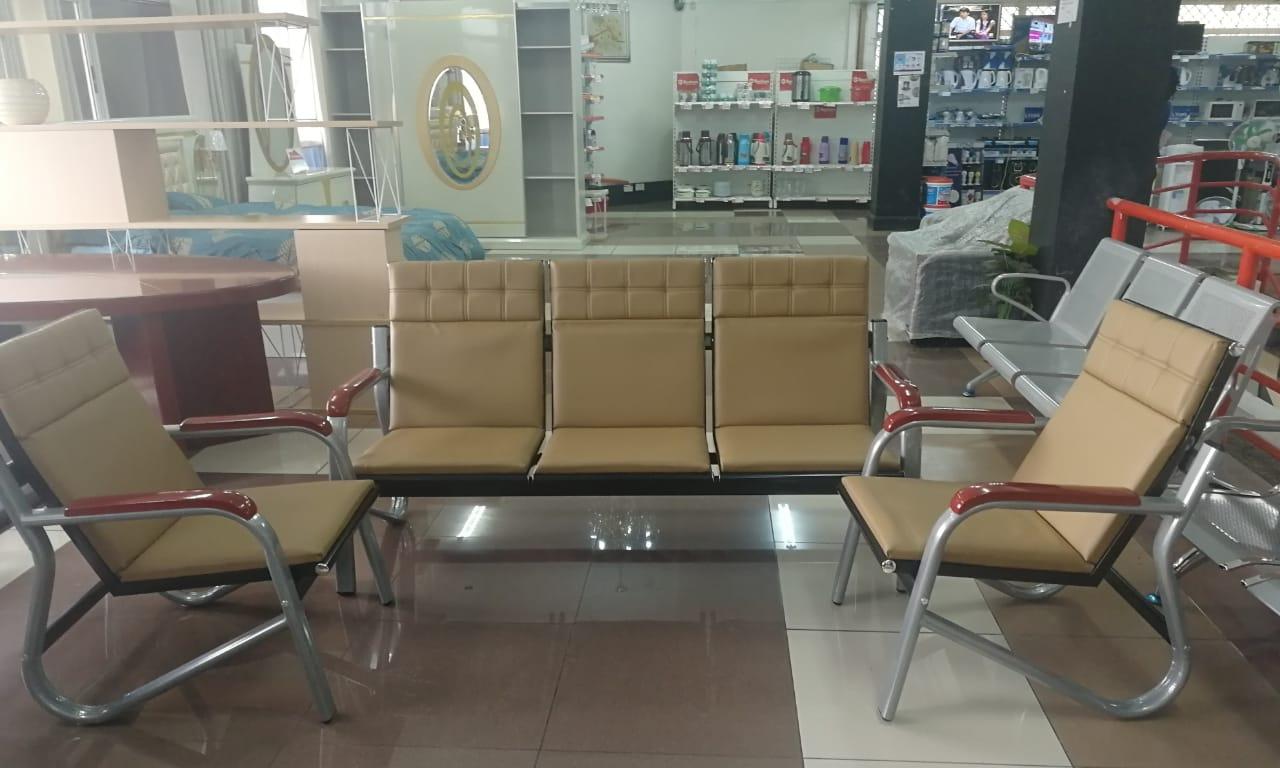 1+1+3 it's a leather padded set with a strong metallic frame, suitable for receiving visitors in the office.