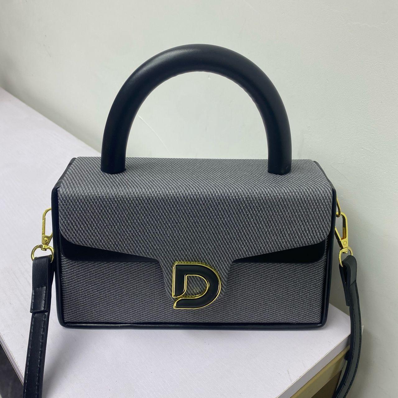 Material: Premium woven fabric with faux leather trim Perfect for carrying essentials in style Closure: Gold-tone "D" logo clasp Handle: Sturdy, comfy, and ultra-chic
