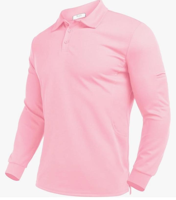 Our plain Pink Long Sleeved polo shirt is elastic as a whole, elastic stretch will move with you for added movement comfort. Small slits in the hemline designed to reduce bunching and perfectly reflect the figure.